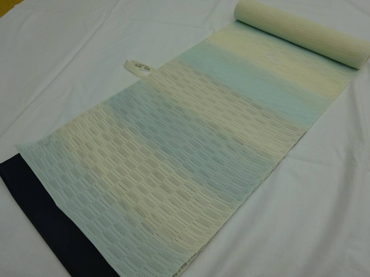> 夏物★新品・未仕立て★京都西陣・イシハラ製紗なごや帯★白と水色の横段柄です