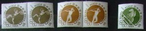> 未使用 昔の5円10円切手 20枚組 東京オリンピック募金付 重量挙げ 槍投げ 馬術 + 鳥シリーズ 6枚 + 国体 第12,13,14,16,17回 9枚