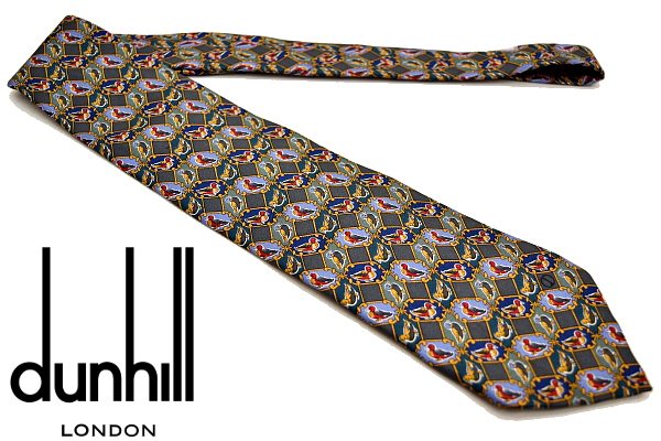 - N783★送料無料★美品★dunhill ダンヒル★イタリア製 グレーカラー 水鳥 鴨かも 総柄 シルクネクタイ