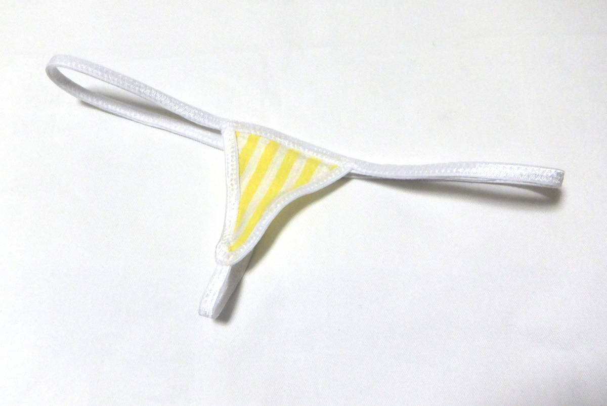- 【新品】ユニセックス極浅極小のコットンストレッチ生地イエローストライプGストリング