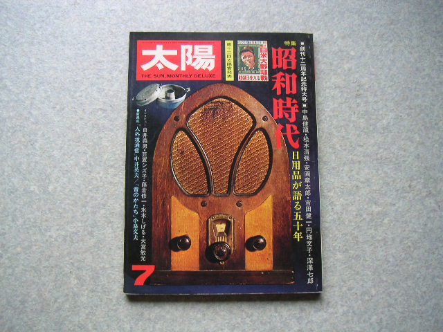 - ∞ 太陽 1975年7月号 特集・昭和時代【日用品が語る五十年】 水木しげる、笠置シズ子、他 平凡社、刊