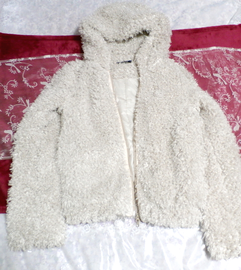 > 白グレーもこもこフワフワフード付きカーディガンコート/アウター White gray fluffy hooded cardigan coat/outer