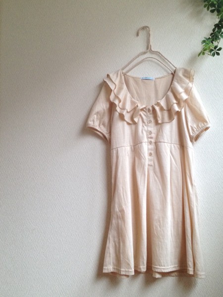 - ★Mignon★ダブルの襟が可愛いベージュの半袖チュニック★M★