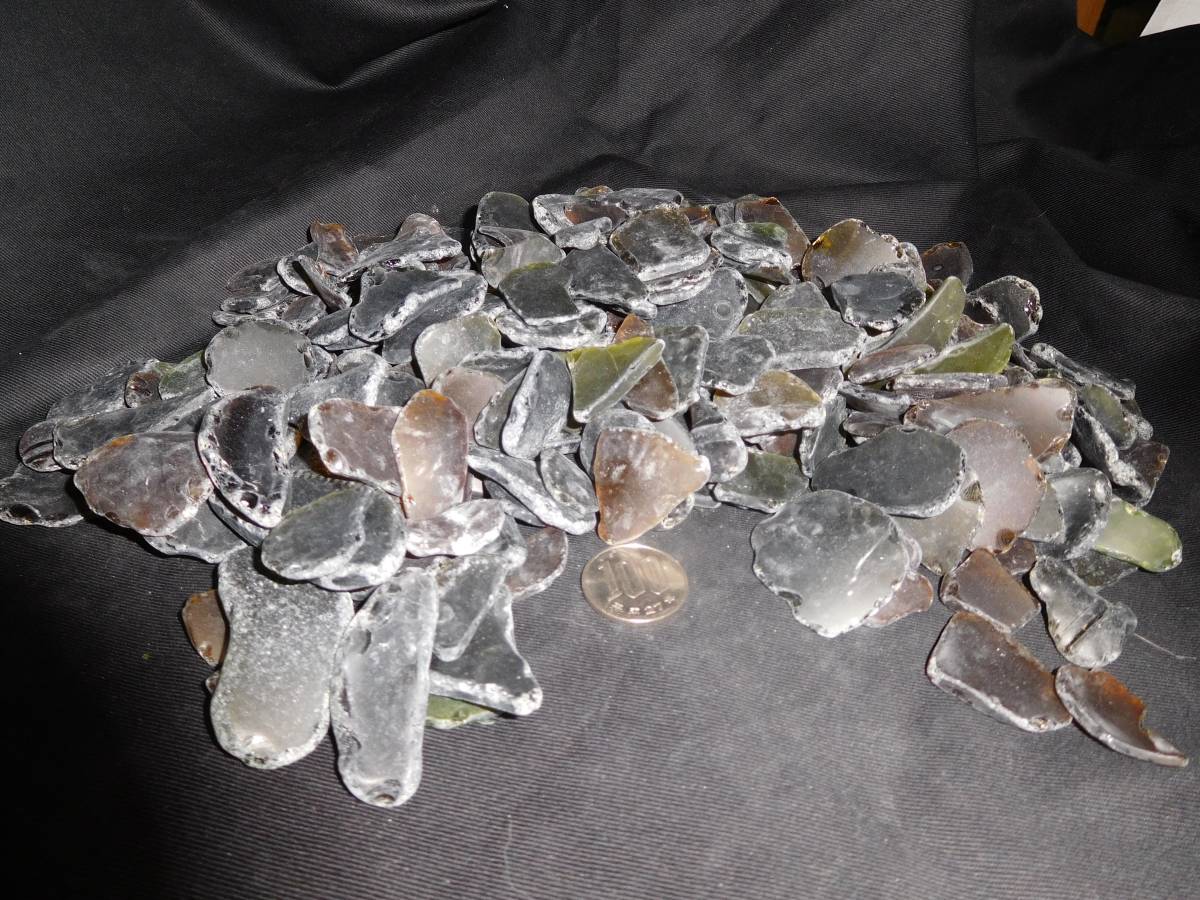 - シーグラス ガラス ビーチガラス 茶色モスグリーン色 1㎏ 送料無料【pza】888-35