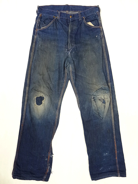 アイテム詳細:ヴィンテージ30~40Sシンチバックデニムワークパンツ 見ためどおりの素晴らしい迫力あるコントラストがついたパンツです。こんなに究極な色落ちはまずないと思います。画像よりも実物はさらに迫力があります。