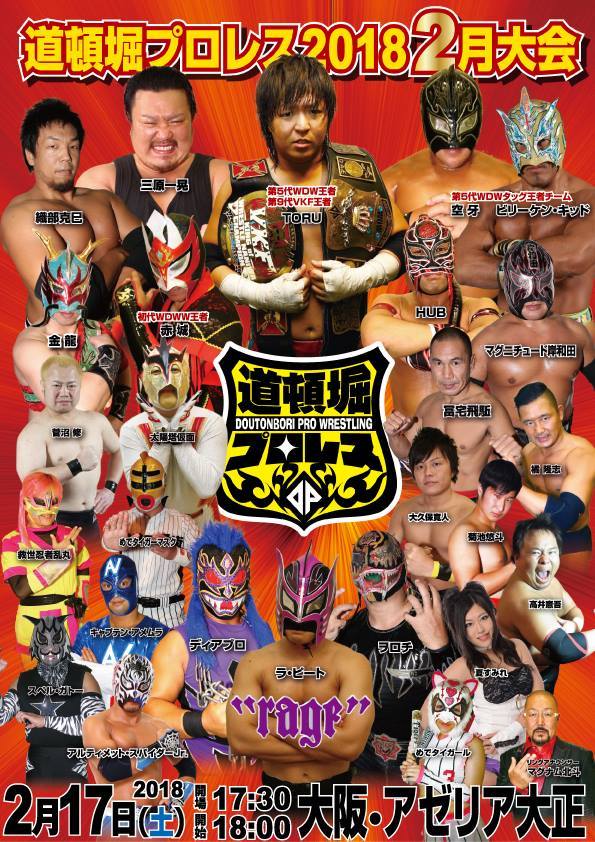 > 【道頓堀プロレス】TORU vs ラ・ピート vs 三原一晃 抗争激化!?【2018.2.17.】