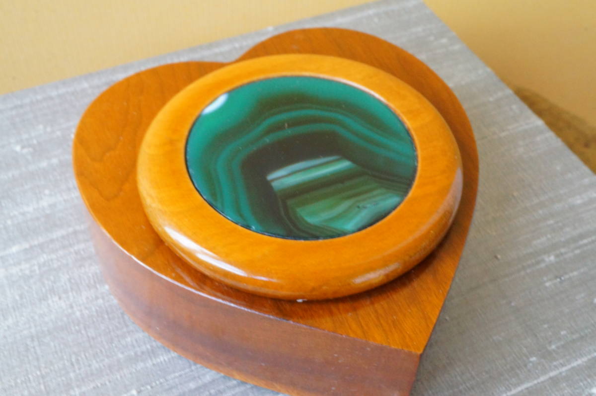 - 30年前のの希少在庫!上質ブラジル産瑪瑙・クリソメノウ・めのう・メノー原石板付木製ハート型小物入れ、宝石箱①