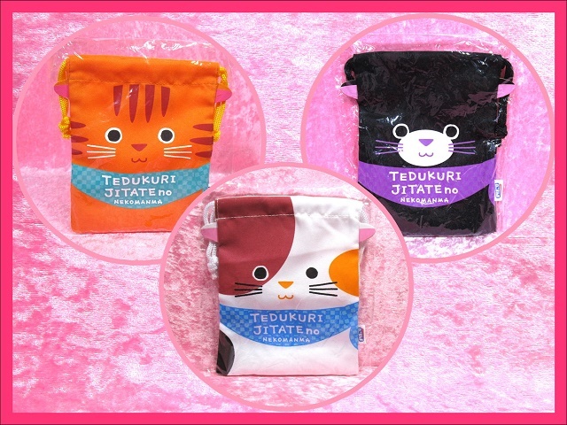 - ねこ巾着 はごろもフーズ 手作り仕立てのねこまんま ノベルティ 19㎝×15㎝/オレンジ+ブラック+ホワイト<3点> 美品