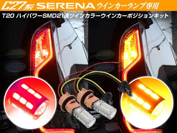 - C27 セレナ ツインカラー LEDウインカー ポジション バルブキット 赤/橙 ハイパワーSMD21連/プロジェクターレンズ搭載 ソケット付き
