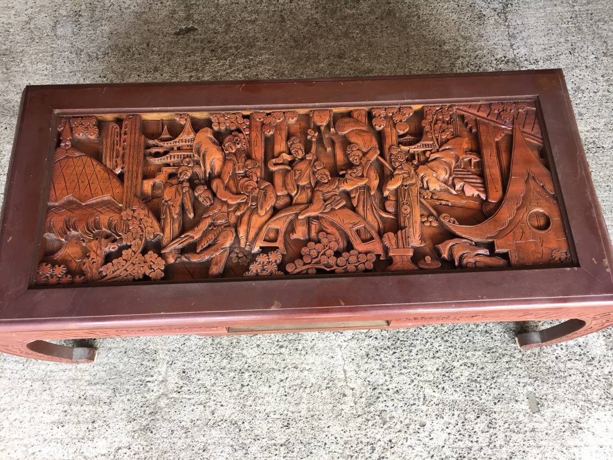 - 旧家買出し品 中国古美術品 中国品 テーブル 彫り物 彫がすばらしい 横124cm奥行き51.5cm高さ40.5cm 古い?