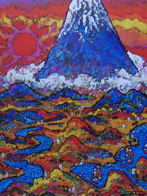 - 絹谷幸二、雲上旭日駿河富士、希少な額装用画集より、新品高級額装付、状態良好、送料無料、日本人画家