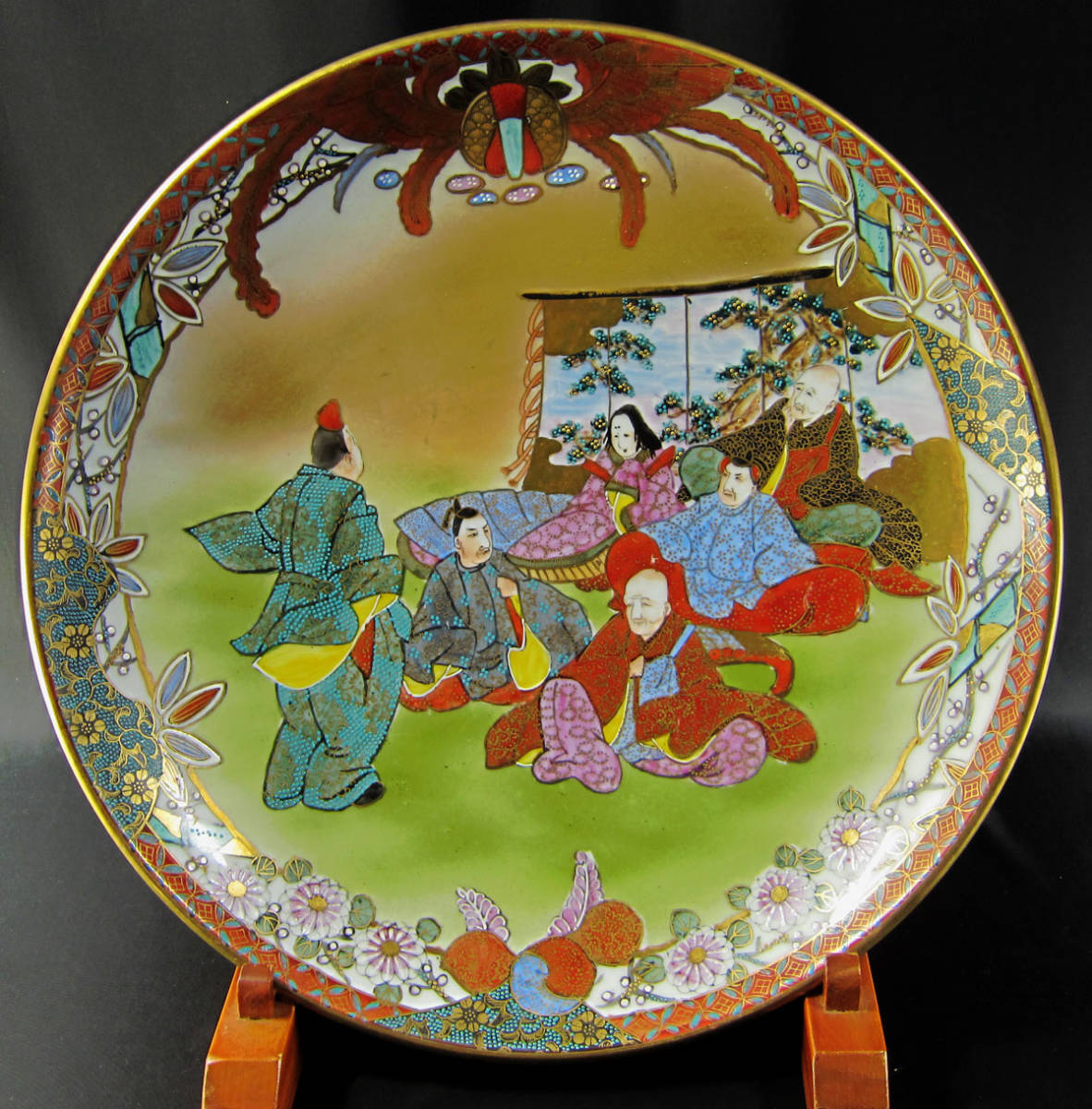 - 九谷焼 公家図 松鶴の大皿 高7.5×径40cm