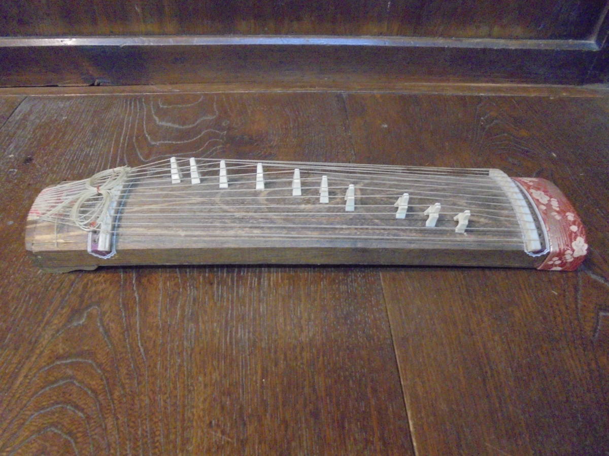 - 【古い小さな琴42㎝】玩具ままごとおもちゃ弦楽器和楽器太鼓古道具アンティークインテリアインダストリアル骨董雛人形ギターバイオリン