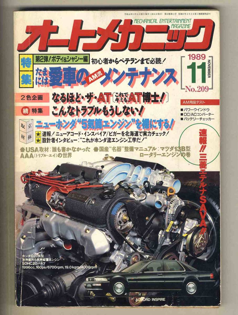 書名/記事: ’89.12 オートメカニック/たまには愛車のメンテナンス-ボディ&シャシー編、なるほど・ザ・AT、ホンダ5気筒エンジンを裸にする、国産名器整備マニュアル-マツダ13B型ロータリーエンジン、…