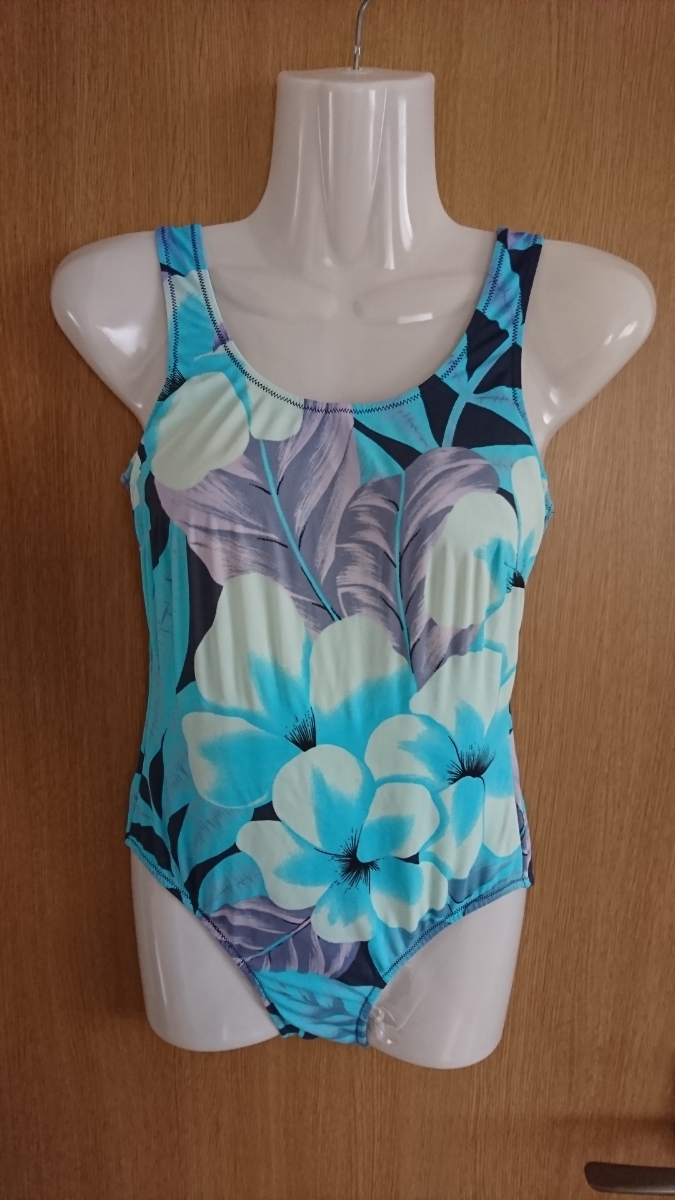 - ☆水色系☆大きなハイビスカス柄のワンピース水着☆総裏地あり☆サイズ11L☆