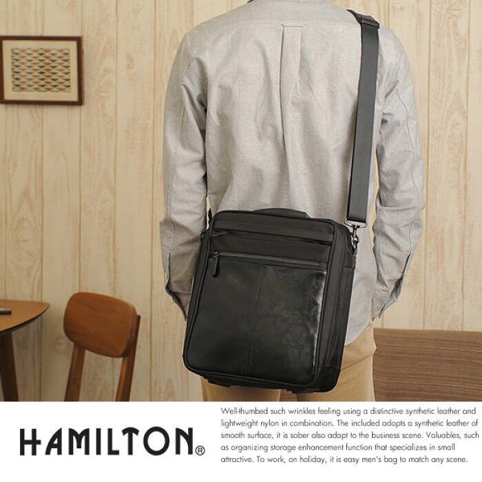 - ☆ 最安値 HAMILTON ショルダーバッグ ブラック 33669 ショルダーバック/斜めがけ/合皮/ナイロン/軽量/鞄/かばん/バッグ/ 【送料無料】 ☆