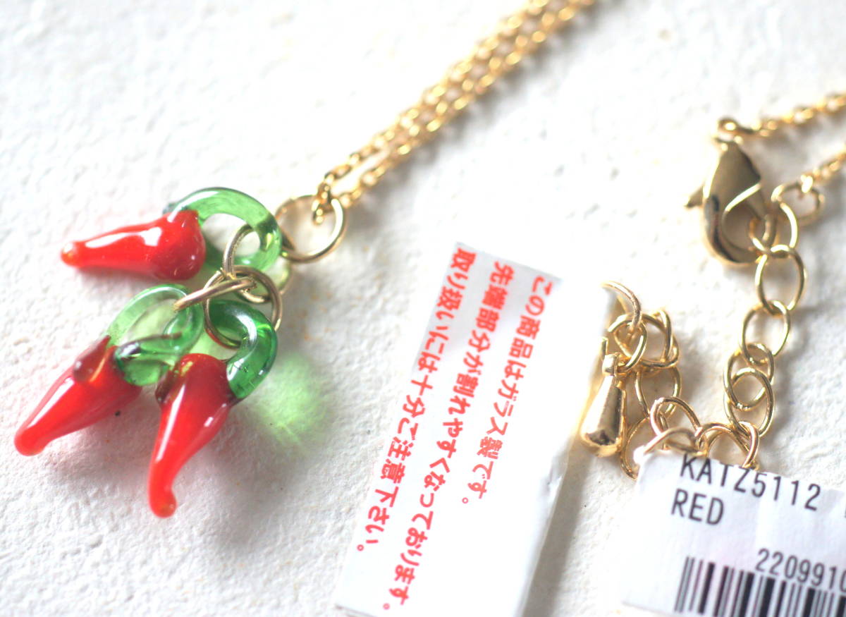 - 新品未使用 ガラス製の唐辛子付きネックレス チリペッパー 赤 韓国製