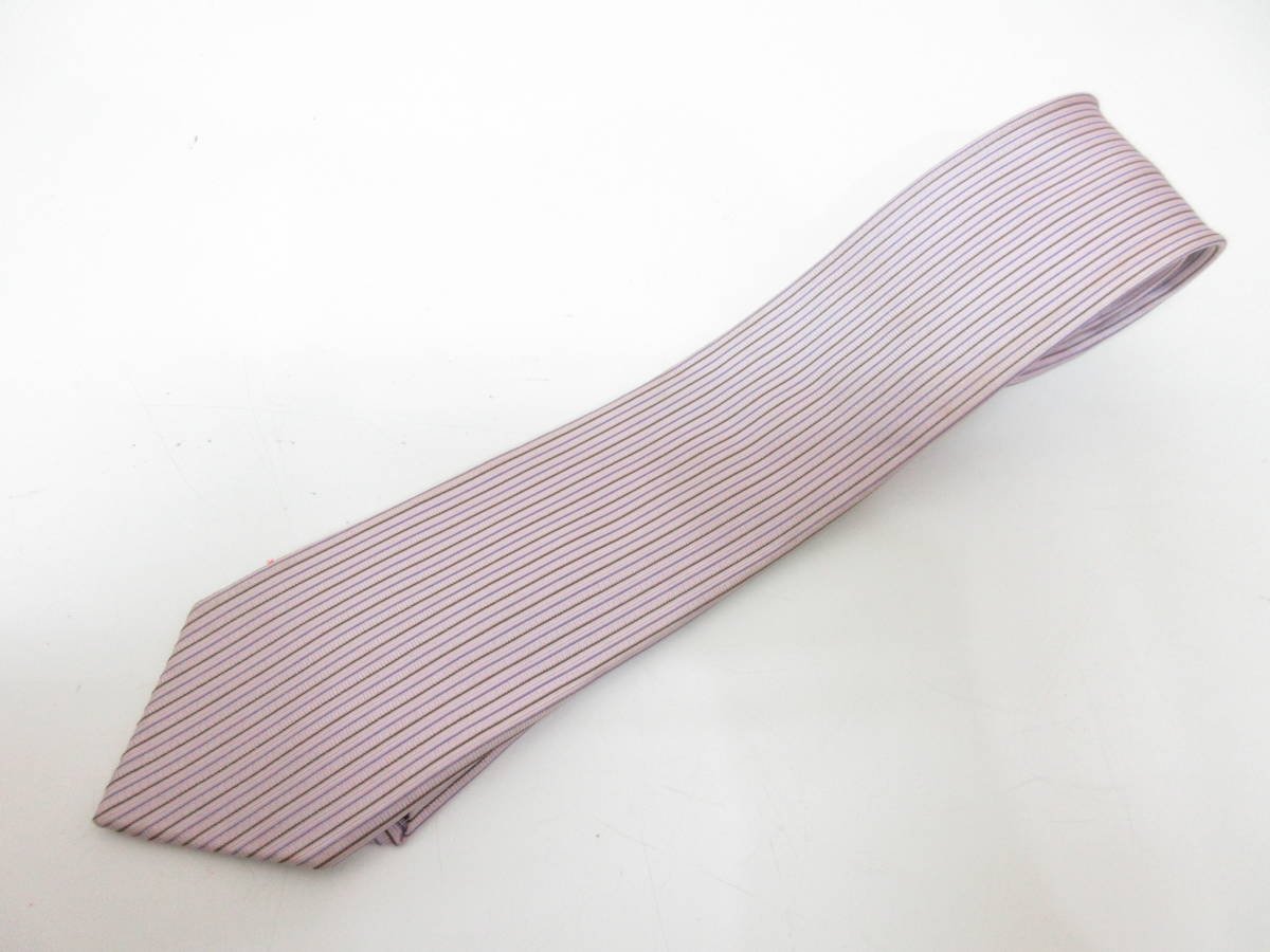 > 美品■COMME CA ISM コムサイズム メンズ ネクタイ ピンク ストライプ シルク 細身 管理1812 J-3