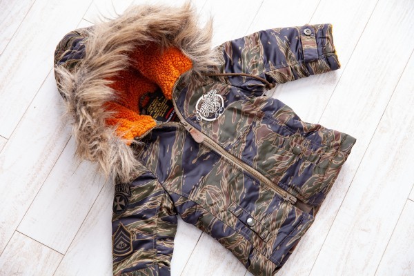 > 新品 美品 hysteric glamour キッズ 迷彩柄 ミリタリージャケット ヒステリックグラマー プリマロフト 80 タイガーカモ ベビー