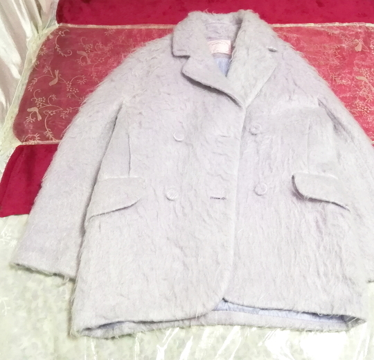 - パープルブルーフワフワロングコート/外套/アウター Purple blue fluffy long coat mantle
