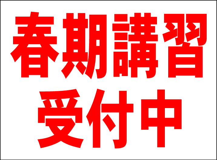 - シンプル看板 「春期講習受付中(赤)」Mサイズ <スクール・塾・教室> 屋外可(約H45cmxW60cm)