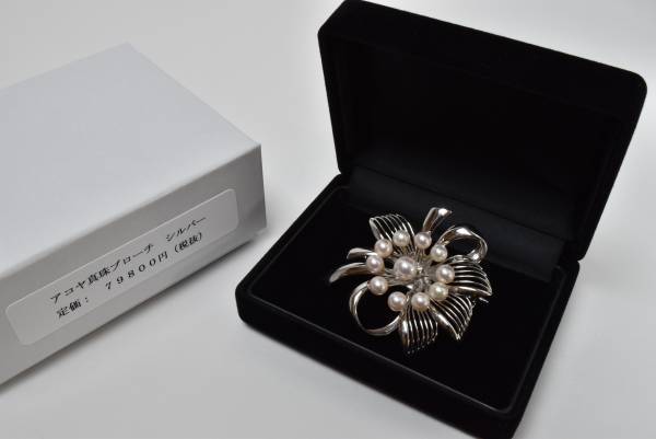 - アコヤ真珠 昔デザイン 銀ブローチ 高級逸品