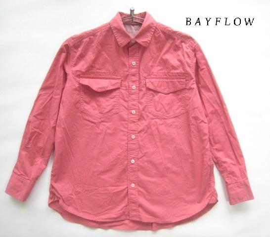 - 美品!!ベイフロー BAYFLOW*ダブルポケット ワイドシルエット長袖シャツ 2 実寸S~M ワイン