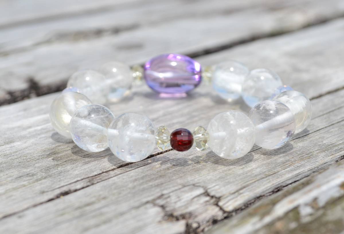- アメジスト セリサイトインクォーツ スコロライト ロードライトガーネット 天然石パワーストーンブレスレット