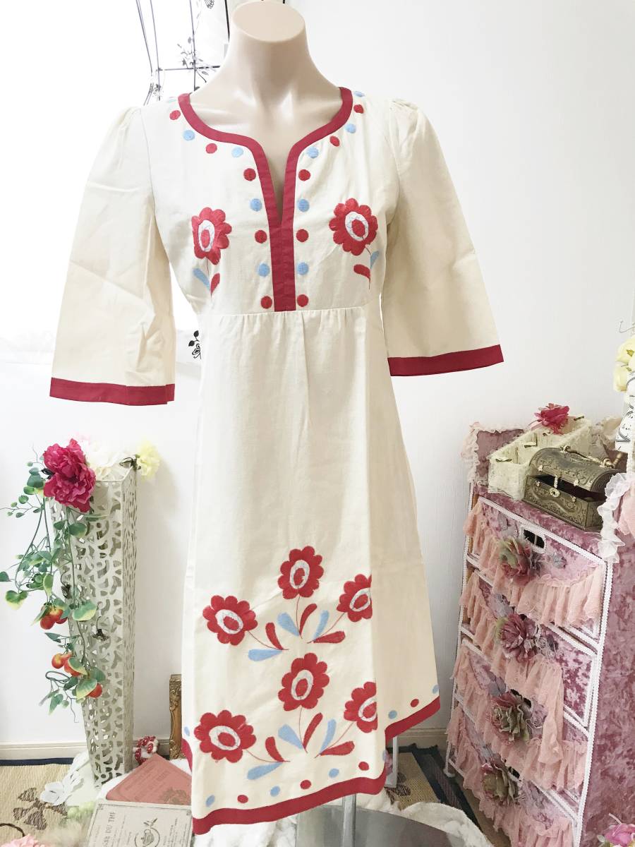 - レディス 999/Freeサイズ:トッカ【TOCCA】リネン麻・綿/花刺繍・ワンピース:定価:49,000円