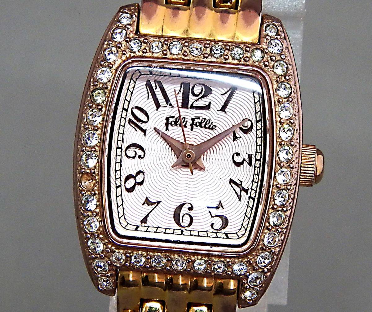 > U-9827■Folli Folie フォリフォリ レディース腕時計 3針 トノー型 ピンクゴールドカラー 中古