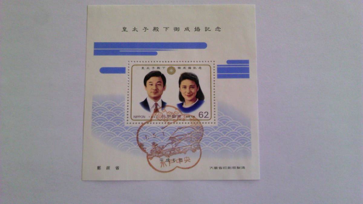 - 令和元年初日記念印 平成5年発行御成婚記念小型シート 「梅の花」の風景印