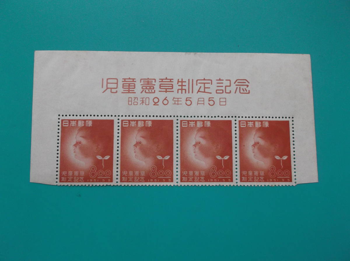 - 記念切手 児童憲章 児童とふたば 4B Children's Charter 1951.5.5 題名