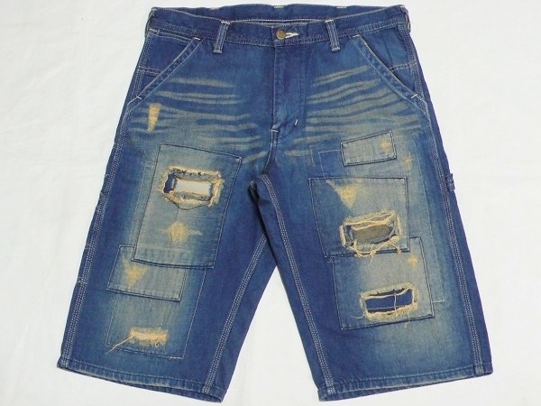 - 美品Leeリー[DUNGAREES]デニムペインターショーツMダメージ&リペア加工\6600