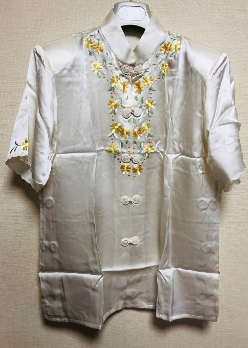 - 刺繍入りレディース高級半袖シルクブラウス40サイズ新品格安即決