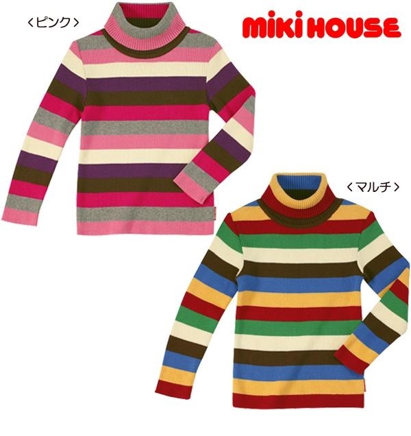 > 即決です!【ミキハウス】新品未使用♪mikihouse 130cm 125cm~135cm マルチボーダー 綿ニットタートルセーター カラー:ピンク