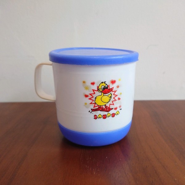 - 新品&即決◎アジアンキッチュなプラマグカップ(ふた付き)【ブルー】レトロ アジアン雑貨 アウトドア食器