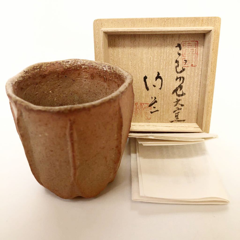 - ★45コレクター放出品!備前焼人気作家 森陶岳 極上品 ぐいのみ(共箱共栞)検)ぐい呑み 酒器 面取り