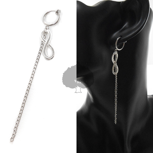 > YGG★新品 インフィニティ チェーン イヤリング フェイクピアス INFINITY シルバー メッキ 片耳 バネ式 スプリング式 リングピアス