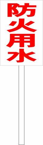 - シンプル立札看板 「防火用水(赤)」工場・現場 屋外可(面板 約H45.5cmxW30cm)全長1m