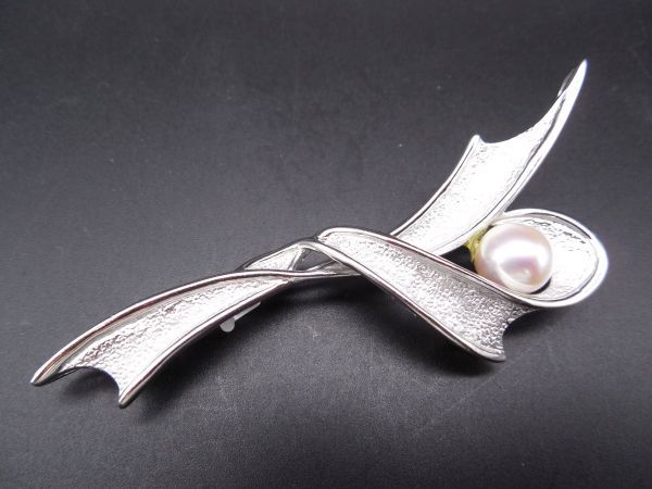 - シルバーxパール ブローチ/ペンダントトップ リボンモチーフ 847370J1141EC14