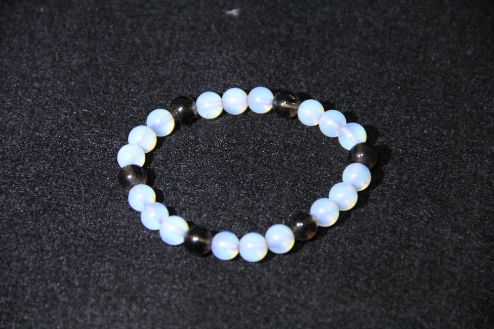 - パワーストーン ブレスレット オプシディアンオパール スモーキークォーツ 数珠 水晶 鉱物 鉱石 天然石 ホワイト クリア ブラック