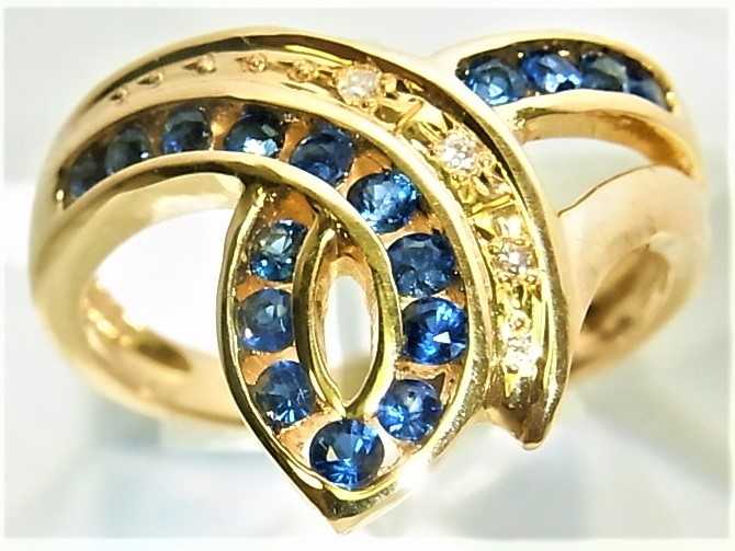 - 【東京 谷中 質屋おぢさん】K18 18金 リング 指輪 サファイヤ ダイヤ入 d