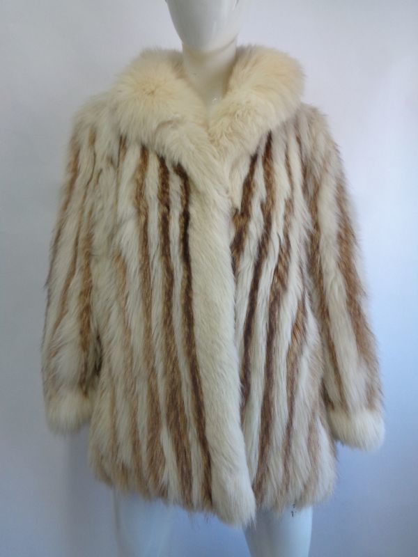 - ホワイトフォックス&ラクーン毛皮ファー・ジャケット アメリカンサイズ4