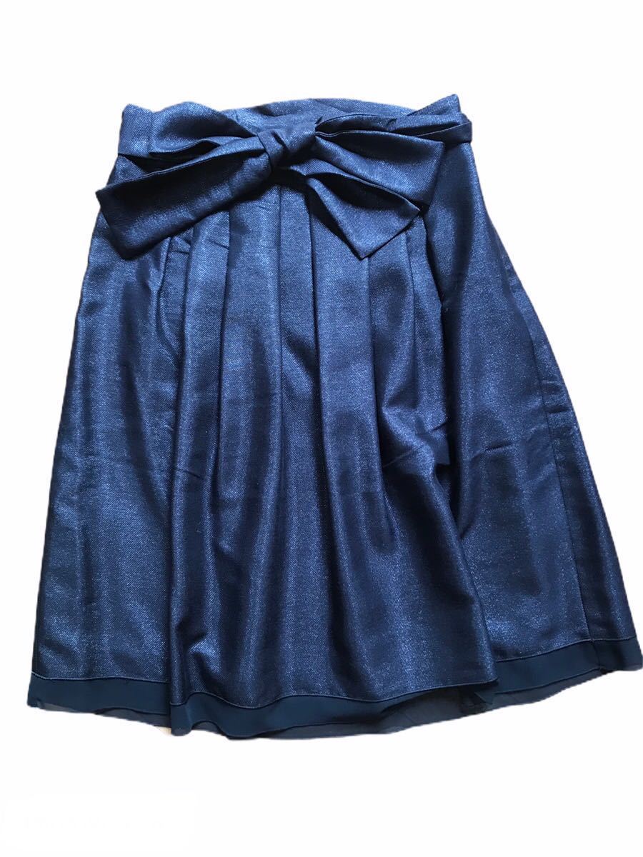 > C 美品 NATURAL BEAUTY ナチュラルビューティー スカート ボトムス 34サイズ(Sサイズ相当) 紺 ネイビー キレイめ