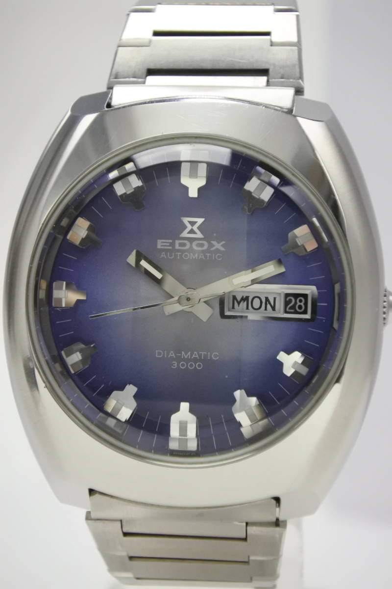 > 70年代スイス名機 EDOX Diamatic3000 腕時計 希少お洒落文字盤 自動巻紳士腕時計 * 未使用