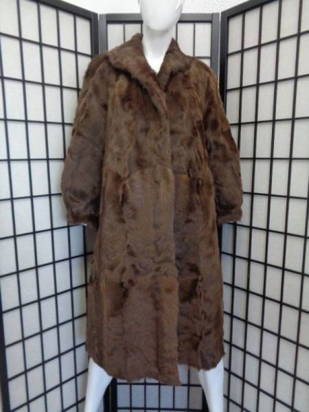 - ブラウン ゴート毛皮ファー・コート サイズ6