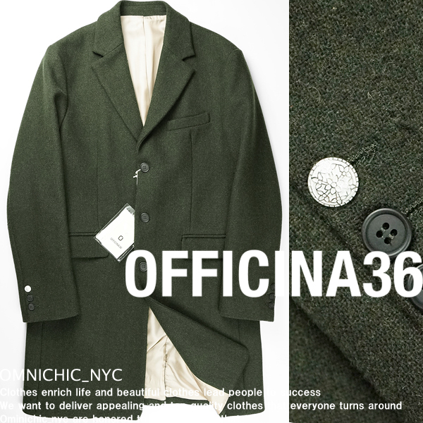 - ■新品12万【OFFICINA 36】オフィチーナ36/美しいシルエットとウールの光沢/FRASSINOミリタリーチェスターコート50/ITALY製/日本L相当C640