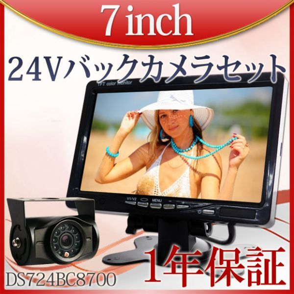 > 24V バックカメラ + 7インチ オンダッシュモニター セット 2系統 解像度 480×RGB×234 赤外線暗視機能 正像鏡像 防水 防塵 IP67