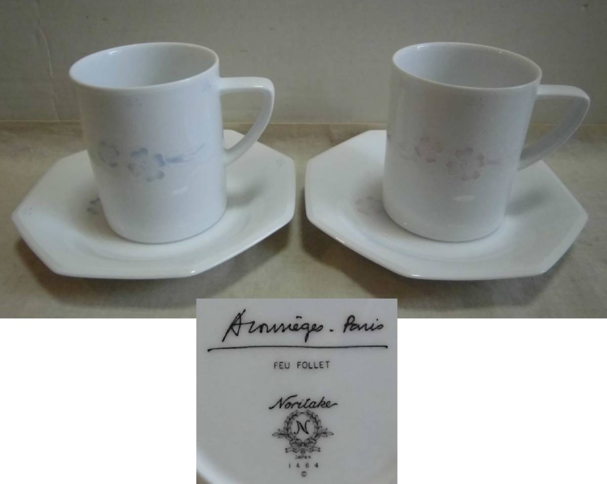 - カップ&ソーサー Noritake ノリタケ 2客 マグカップ 白磁にブルーとピンクの花柄 色違い ティーカップ コーヒーカップ 工芸品 茶器 レトロ