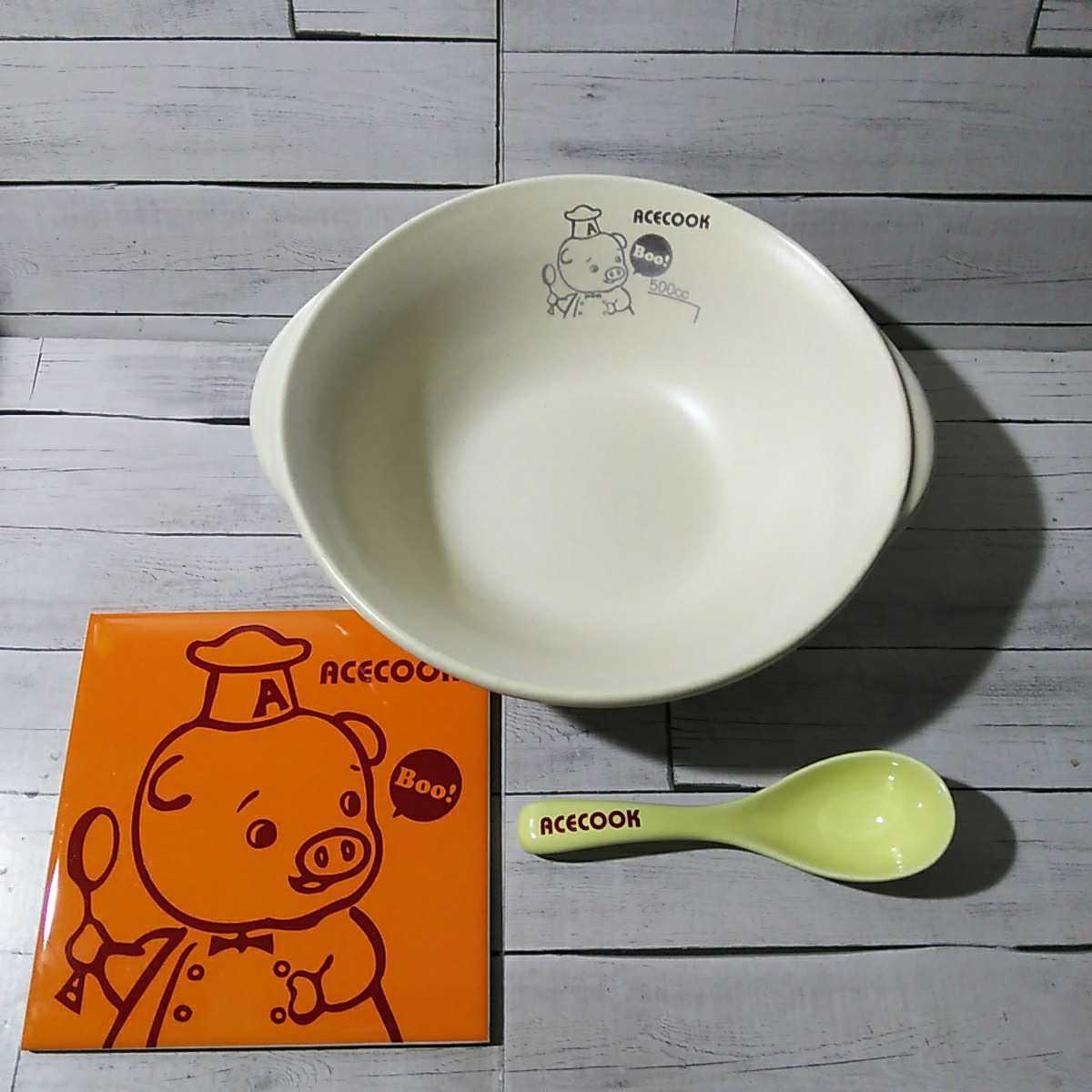 - エースコック「どんぶり 1個 レンゲ 1個 鍋敷き 1枚」丼 ACECOOK 陶器製